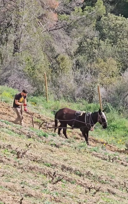 A la nostra finca, l’esperit de granja es viu de manera intensa cada dia. Un exemple clar d’aquesta filosofia és Xavi, el nostre “mulero”, qui treballa al costat de la mula Clara a les vinyes de Coster de Carinyenes, situades al paratge Les Planetes. Aquest espai formarà part del cupatge del vi Planetes Clàssic 2022, un vi que neix de la connexió profunda amb la natura i de l’ús dels recursos que ens ofereix.